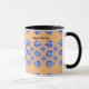 Diseño geométrico de Diamond Checkered en azul y blanco. Fondo beige. Dos lugares para personalizar este Mug que serán perfectos para un regalo. Parte de la colección Plethora of Patterns.
