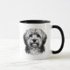 Dibujo en blanco y negro de un perro habanés. Ojos redondos, nariz mojada y rizos esponjosos por todas partes. Exactamente cómo te imaginarías un pequeño y amigable perro.