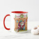 Taza Dibujo animado adorable de Papá Noel alegre bajand