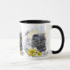Taza Dibujo manual gracioso gato negro británico con fl