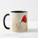 Café, tazón de té representa una flor roja solitaria con un campo mudo de trigo en el fondo. Presenta una cita cristiana motivadora, "Dios no te creó para integrarte".