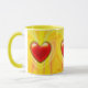 Diseño cerámico de tazón de café amarillo de corazón rojo. Moderno y colorido. ¡Corazón moderno! ¿El regalo de Lover? ¿Ducha de novia? O cómpralo por ti mismo y consentirte. Por favor revisa mi blog para extras - ¡ideas divertidas y muchas cosas GRATIS! http://hotfrogstore.blogspot.co.uk