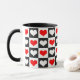 Formas geométricas geométricas de corazón rojo y blanco en negro y blanco revisan el diseño de patrones de repetición sin fisuras de estilo moderno