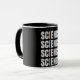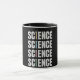 Ilustracion grunge colorido con diseño de texto "Ciencia, ciencia, ciencia" y decoración de tubos de ensayo coloridos