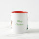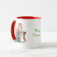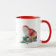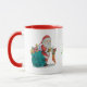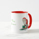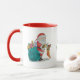 Esta taza original de navidades es una foto de dos de Santa. una santa está envolviendo regalos y la otra santa tiene regalos en su saco de Navidades listos para la entrega del día del Navidad. El diseño de temporada se produce a partir de una pintura acuática original y hace una atractiva taza festiva para niños o adultos que aman el lado tierno y tradicional de la temporada de Navidades. Este ilustracion original animará las celebraciones navideñas de todos. el plato de temporada es personalizable, puedes añadir tu propio texto.