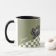 Celebra tu vínculo con tu leal compañero con esta elegante taza de "Perro Papá Jaque de Oliva Negra Labrador". Esta taza, elaborada con una mezcla única de elementos modernos y juguetones, combina un diseño de chequera de oliva y salvia a la moda con un ilustracion adorable y realista de un Labrador negro que asoma al borde. La taza es totalmente personalizable, lo que le permite añadir su nombre o un mensaje personal, lo que lo convierte en una opción ideal para los papás de perro que buscan añadir un poco de encanto personal a su rutina matutina de café. Diseñado por Anna Szalacha, Happy Ann Designs 2024.
