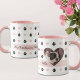 ¡Haz que cada sorbo sea especial con este encantador El día de San Valentín de personalizable! Con un delicado diseño rosa y negro de huellas de pata y corazones, esta taza incluye texto personalizado y un espacio fotográfico. Perfecto para el café matutino, el té o como un regalo para los amantes del perro. ¡Añade el nombre y la foto de tu cachorro para un mantenimiento único! No dude en ponerse en contacto con el creador si tiene algún problema con la personalización necesaria. Diseñado por Anna Szalacha, Happy Ann Designs.