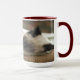 Dos adorables pequeños gatos siameses están teniendo dificultades para mantener sus ojos abiertos en estas maravillosas jarras. Un regalo perfecto para cualquier amante del gato.
