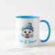 Dos adorables hombres de nieve que miran la cara vestidos con tazas de café de Navidades azules con texto de personalizable. Un regalo ideal para la familia y los amigos. Gracias por pasarte. Por favor visite nuestra tienda para más artículos!