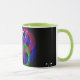 Modern 3D circular inspired double loop mesh geometric custom coffee mug. Unique features include a colorful design, custom text and additional mug color options.