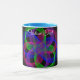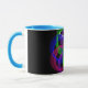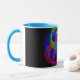 Modern 3D circular inspired geometric coffee mug with light blue handle. Unique features include a colorful mesh styled center design, additional mug color options and text customization.