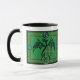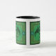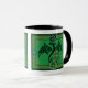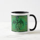Dragón negro tribal con nudos celtas verdes trabajando alas. Los tonos de nudo verde y celta funcionan detrás y alrededor del dragón y del trébol de cuatro hojas.