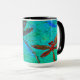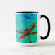 Espléndidas libélulas rojas y azules sobre un fondo turquesa y azul turquesa. De mi arte original de la libélula. LyndseyArt
