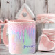 Taza Drenajes de nombres holográficos rosa de unicornio