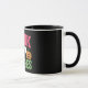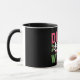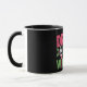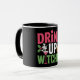 Featuring a vibrant mix of pink, green, and orange letters alongside a flying witch, a martini glass, and a pumpkin, this mug is perfect for enjoying your favorite hot beverage.