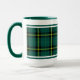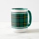 El tazón de café con el tartán del clan Duffy, un patrón clásico de plaid en tonos verdes y negros, con acentos amarillo brillante. Cinco estilos disponibles en dos tamaños.