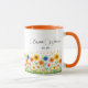 Add a touch of cheerful charm to your morning routine with this personalized wildflower coffee mug, featuring a vibrant field of watercolor-style daisies and blooms in sunny shades of orange, yellow, and blue. Customize with your name and established year for a meaningful, unique touch – perfect for celebrating family milestones, personal achievements, or simply brightening your kitchen.