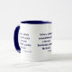 Esta taza de dos tonos muestra una exhibición de letra impresa con letras azul marino mostrando el versículo de la biblia "Efesios 5:22 KJV" sobre un fondo blanco. Este verso hace referencia al capítulo 5 del Libro de los Efesios que muestra el número 22 de este tema de la cita de las Escrituras Biblias de la Biblia del Rey James. La llanta y la manecilla están acristaladas con colores a juego disponibles en la construcción de cerámica de microondas y lavavajillas de 11 onzas o 15 onzas.