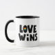 Este diseño presenta la frase Love Wins con un colorido corazón arcoiris.