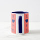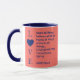 Moderno, elegante coral y azul AMOR ESPERANZA CREER Mug Personalizado con las palabras ESPERANZA y CREER en la parte delantera, más un extracto de 1 Corinthians 13:7-8 - EL AMOR NUNCA FRACASA en la parte posterior. En la parte delantera, la O en HOPE se sustituye por un corazón. En la parte de atrás, la O en AMOR es reemplazada por un corazón, y hay una Escritura de PERSONALIZABLE de 1 Corinthians 13:7-8 seguido de un NOMBRE DE PLACEHOLDER. Puedes reemplazar esto con tu versión de la Biblia preferida más tu nombre. Un regalo ideal para San Valentín, cumpleaños y Navidades. El esquema de color es la tipografía ROYAL AZUL sobre un fondo CORAL moderno. Hay otros colores disponibles.