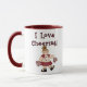 Una animadora cabelluda rubia en una falda roja con los poms rojos del pom y el texto rojo que me lee "aman el animar!" ¡se ofrece en las camisetas de la animadora, las tazas, las bolsas de asas, los botones, las tarjetas, los pegatinas, y otros artículos que animan!