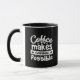 La taza con tema de café con texto en blanco lee Coffee hace todo posible! Si eres un adicto al café o simplemente alguien que no puede empezar el día sin una taza de café, ¡te encantará este café diciendo una bolsa de té!
