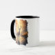 Taza El ciervo en la reflexión sobre el bosque en otoño