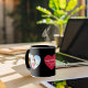 Un fondo de color negro decorado con un corazón rojo, dos marcos de foto corazón. Personaliza y agrega tu nombre.