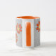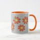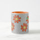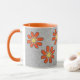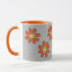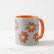 Flores gráficas lindas en una estructura neutral, gris del fondo que tela tejida suave de los resambles. Los detalles de la taza se fijan al naranja - puede ser modificado. ¿Es este su favorito taza?