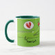 El lagarto expresa su amor por el pájaro con lágrimas de cocodrilo. Texto personalizado en ambos lados.