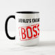 El mejor café del mundo. Graciosa idea de regalo de agradecimiento para la oficina el Día del Jefe. Texto comercial y colores personalizables. Diseño de sellos de caucho rojo.