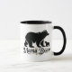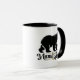 Silueta negra de un oso madre con un pequeño cachorro caminando al lado, "Mama Bear" en negrita debajo, acentos dorados en los bordes.