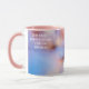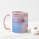 Flores de sakura rosadas y flores de cerezo japonesas. Fondo azul y rosa suave. Juego de la luz. Hermosa taza de personalizable. Puede cambiar la imagen y puede cambiar o eliminar el texto haiku de la plantilla. Se puede transferir este diseño a una variedad de otros productos, incluyendo latte mug, vaso de vidrio, jarra, tetera, tazón, tarro de caramelo, botellas de agua, velas. Simplemente elija el producto de la opción desplazable "Transferir diseño a un producto". No olvide usar el botón "Personalizar", o "Editar diseño", o el enlace azul "Detalles" —> "Haga clic para más personalizares" —> "LLENAR/FIT" para AJUSTAR EL DISEÑO AL TAMAÑO Y FORMA del producto, para rotarlo, para cambiar la posición, tipo, color del tipo de letra, o para agregar su propio texto desde cero. Solo sé creativo y diviértete.