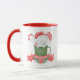 Este bonito diseño de Elefante Blanco presenta un elefante acuarela con un sombrero Santa que sale de una taza verde de Navidades. Se puede añadir un nombre en blanco en un cartel de cinta roja. La espalda tiene un elefante asomando de una corona.