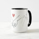 "Celebrate your special bond with this elegant and minimalist line art mug. Featuring a beautiful 'Pinky Promise' or holding hands illustration with a vibrant red heart, this design symbolizes commitment, love, and togetherness. Its clean and modern aesthetic makes it a perfect gift for Valentine's Day, anniversaries, weddings, or engagements. You can personalize it with your names or a special date on the other side to make it a truly unique keepsake for your partner."