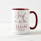 Elegante guión de caligrafía roja Alegría a la taza navideña del mundo - una moderna toma de un himno tradicional y clásico de los Navidades. Trae un toque de elegancia festiva a sus mañanas, recordando la verdadera razón de la temporada. Personaliza con tu propio mensaje y nombre.