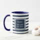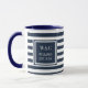 Taza Elegante azul marino y franja blanca monograma nom