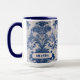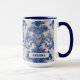 Elegante barro vintage Blue toile de jouy monogram mug. Hermoso patrón inmaculado de tela de jouy Azul sobre fondo blanco.Las impresiones de tela son una rabia de todos los tiempos en este momento, esta es una elegante y ornamentada tela vintage de jouy con un patrón de damasco exótico, un estilo divertido que actualmente es tendencia para la decoración del hogar, ropa, estuches para móviles e Ipad, invitaciones y mucho más. El diseño es clásico y atemporal, con un impresionante color. Puede cambiar todos los colores y tipos de letra del texto, haga clic en el personalizar situado más abajo del área de personalización del texto que le llevará a la herramienta de diseño. Un regalo único para el cumpleaños, las vacaciones y cualquier ocasión especial. Ya sea para día de San Valentín, Navidades o como regalo en general, hace una gran idea de regalo