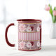 Taza Elegante Monograma de franja floral rosa de Borgoñ
