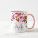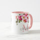 Taza Elegante Monograma Floral de Rosa Rosa para Chicas