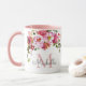 Taza personalizada con monograma de nombre femenino elegante y floral de rosa color rosa. Características, rosas de color rosa claro y rosa intenso en acuarela, arreglo floral botánico con follaje sobre fondo blanco. Puedes personalizar con tu nombre y monograma inicial con una caligrafía manuscrita elegante y bonita. Esta taza femenina es el regalo perfecto para ella para cumpleaños, despedida de soltera, boda, Navidad, vacaciones o cualquier ocasión. Si necesitas ayuda o artículos coincidentes, por favor contacta con el diseñador.