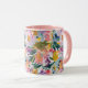 Taza Elegante Pastel Rosa Abstracto Floral Monogramado
