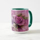 Personaliza este elegante "One of a Kind" rosa Rose Bouquet Mug! Cuenta con un elegante Bouquet rosa rosado y morado con rosas rosas rosas claras y rosas oscuras rodeando flores blancas y moradas. Diseño De Arte Original Del Artista Kerry Miller.