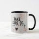 Una taza de rosa de oro y mármol gris con las palabras: Cuídate.
