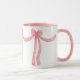 Bonito rosada satén luce cintas envueltas alrededor de esta taza dulce de café. El interior rosado con mango rosado casero hace que esta taza de café sea tan hermosa.