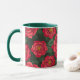 Taza Elegantes rosas rojas con un patrón de hojas verde