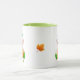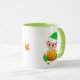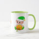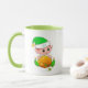 El elfo verde lindo sostiene una calabaza sobre el fondo blanco Mug. El nombre se puede personalizar. Ideal para la temporada de otoño