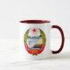 El emblema sigue las pautas de diseño básico del emblema de la Unión Soviética adoptada en muchos otros países incluyendo Corea del Norte, que indica claramente las relaciones entre la ideología comunista y la fundación del país al principio de la guerra fría.