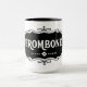 El trombón en texto decorativo contra un emblema negro es un diseño de regalo único para músicos de bajo nivel de latón, profesores de música y estudiantes en concierto y banda de marcha.