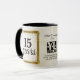 Faux gold and aged background employee anniversary, longevity or milestone recognition and appreciation coffee mug award, to celebrate and reward individual or group achievements, personalized with the number of years, employee name, message, and your logo, perfect additions to your work engagement efforts.